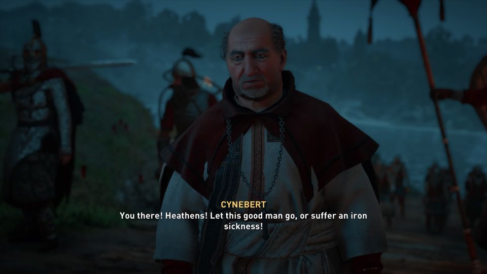 After the fight, follow Basim to meet Cynebert.
