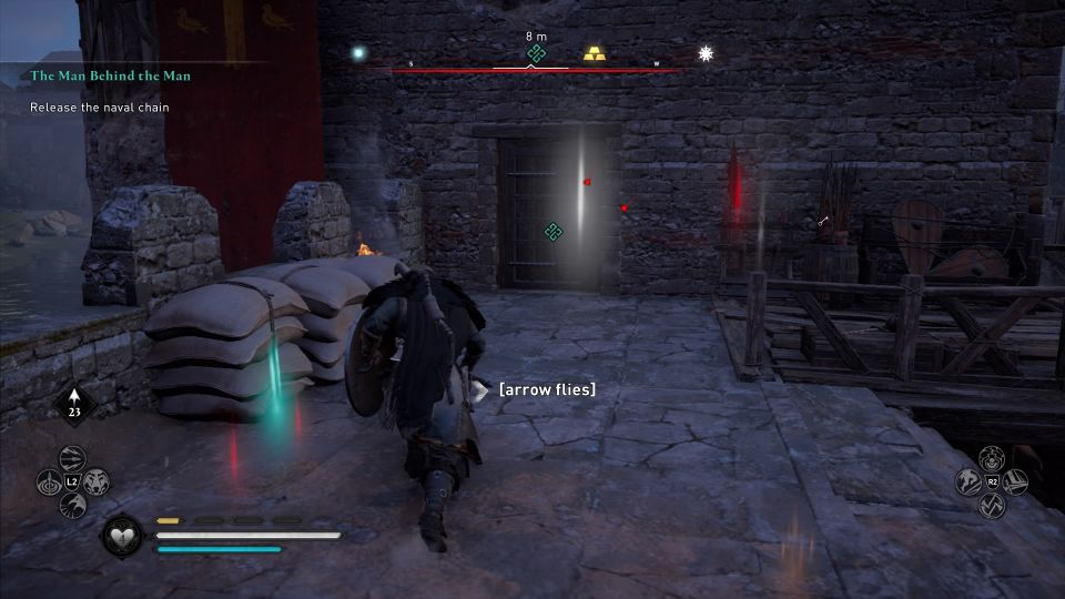 Before the assault, you need to release the naval chain. Get to the location shown below, marked by the quest symbol.