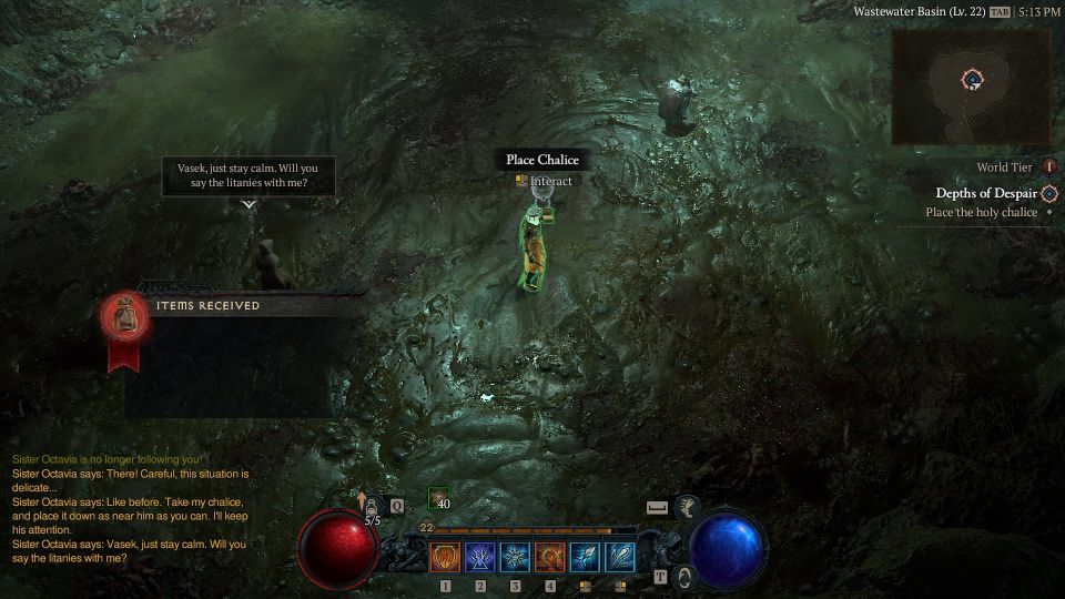 Leave the sewers and talk to Sister Octavia outside to complete the quest.