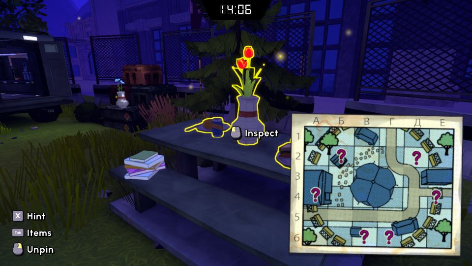First of all, you should see a police van and a flower van. You can pick up the keychains from the ignition of each vehicle.