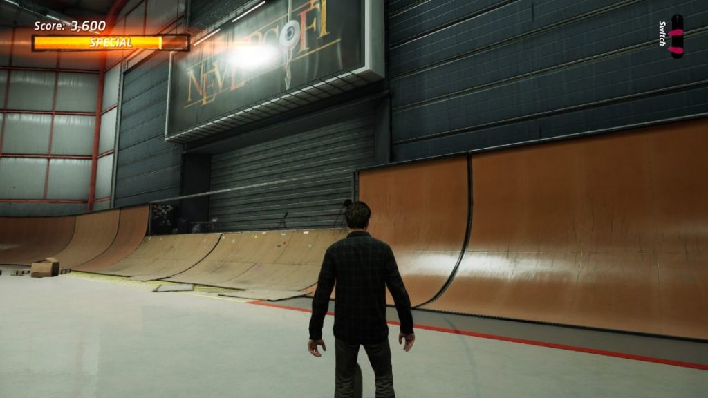 For this one, you simply need to go over from one section to the other (separated by the glass pane). You can use the quarter pipe to jump over and land on the other side’s quarter pipe.