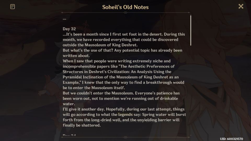 Desert’s Remembrance is a world quest under Old Notes and New Friends in Sumeru.