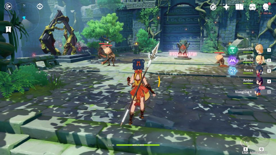 Enter the ruins and you get to play as Xiangling. She is pyro based. You can also use Amber for this map.