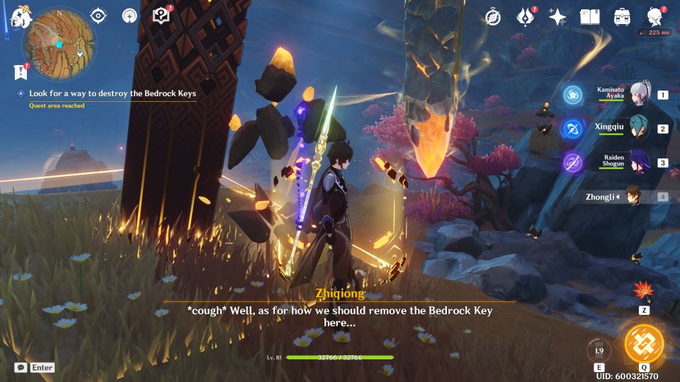 Once you’re done destroying all 3 Bedrock Keys, return to Zhiqiong.