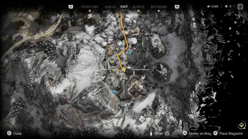 Next, head to the marker shown in the map below. It’s the base of the mountain where the climb begins.