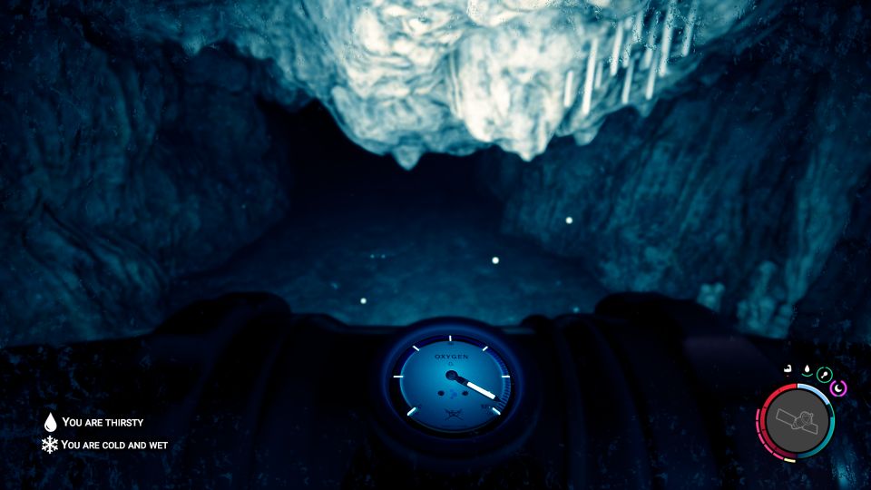 To exit the area, you can just jump into the water and swim all the way down. The rebreather equips itself.